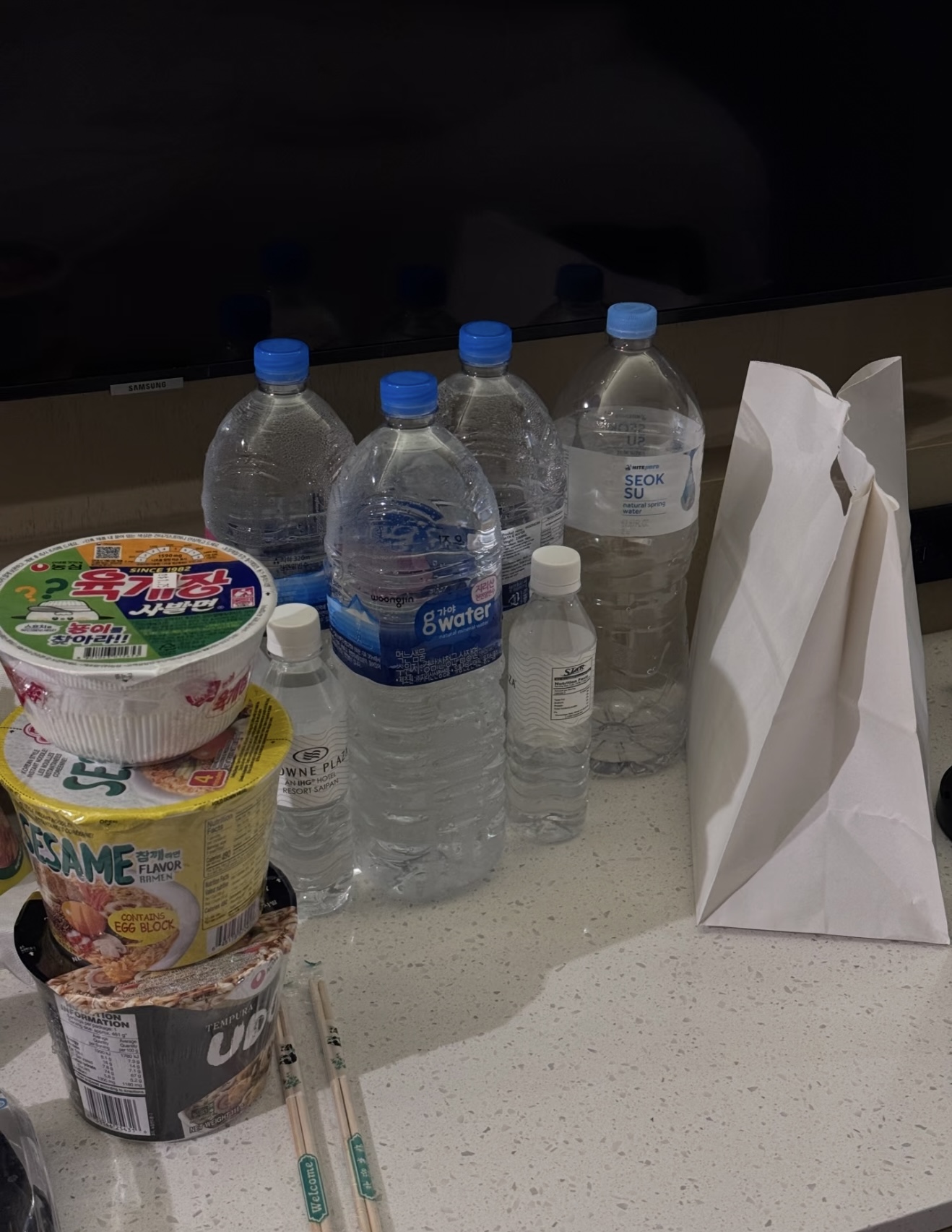 游客在酒店准备的水和食物(受访者供图)