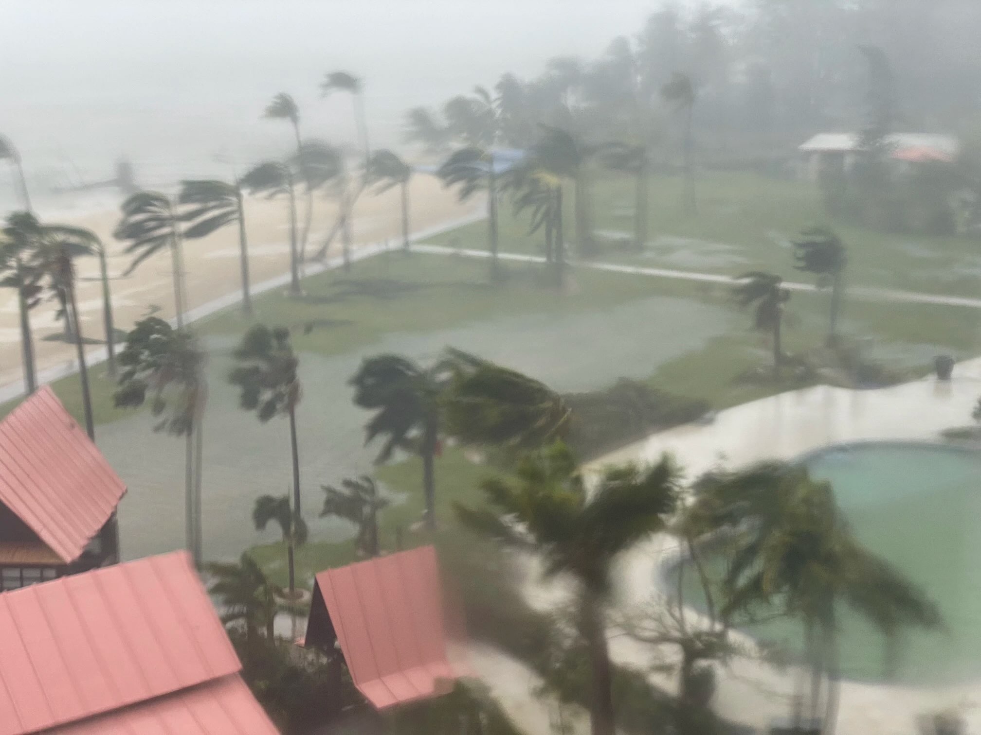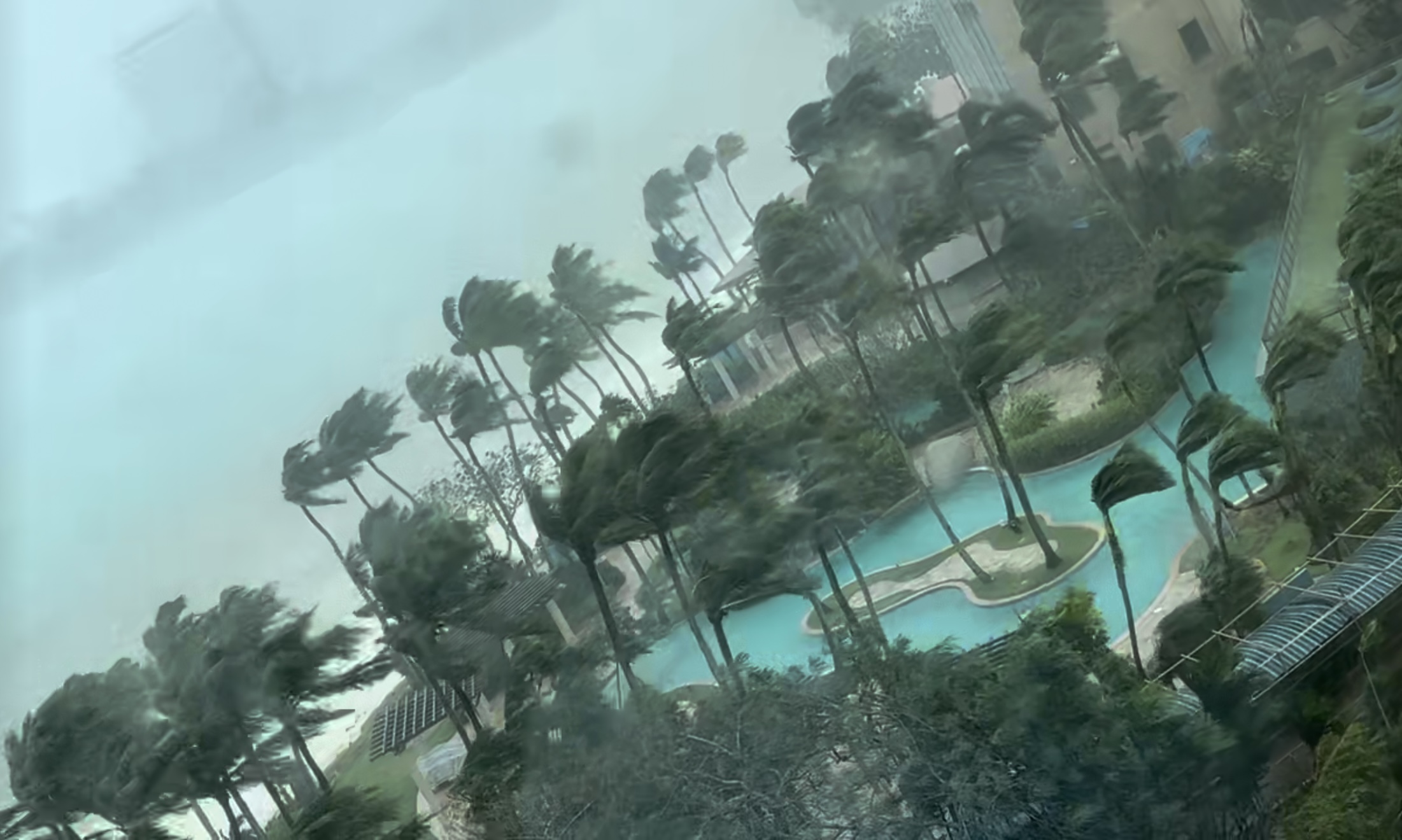 曹先生所在塞班岛酒店外的台风情况(受访者供图)