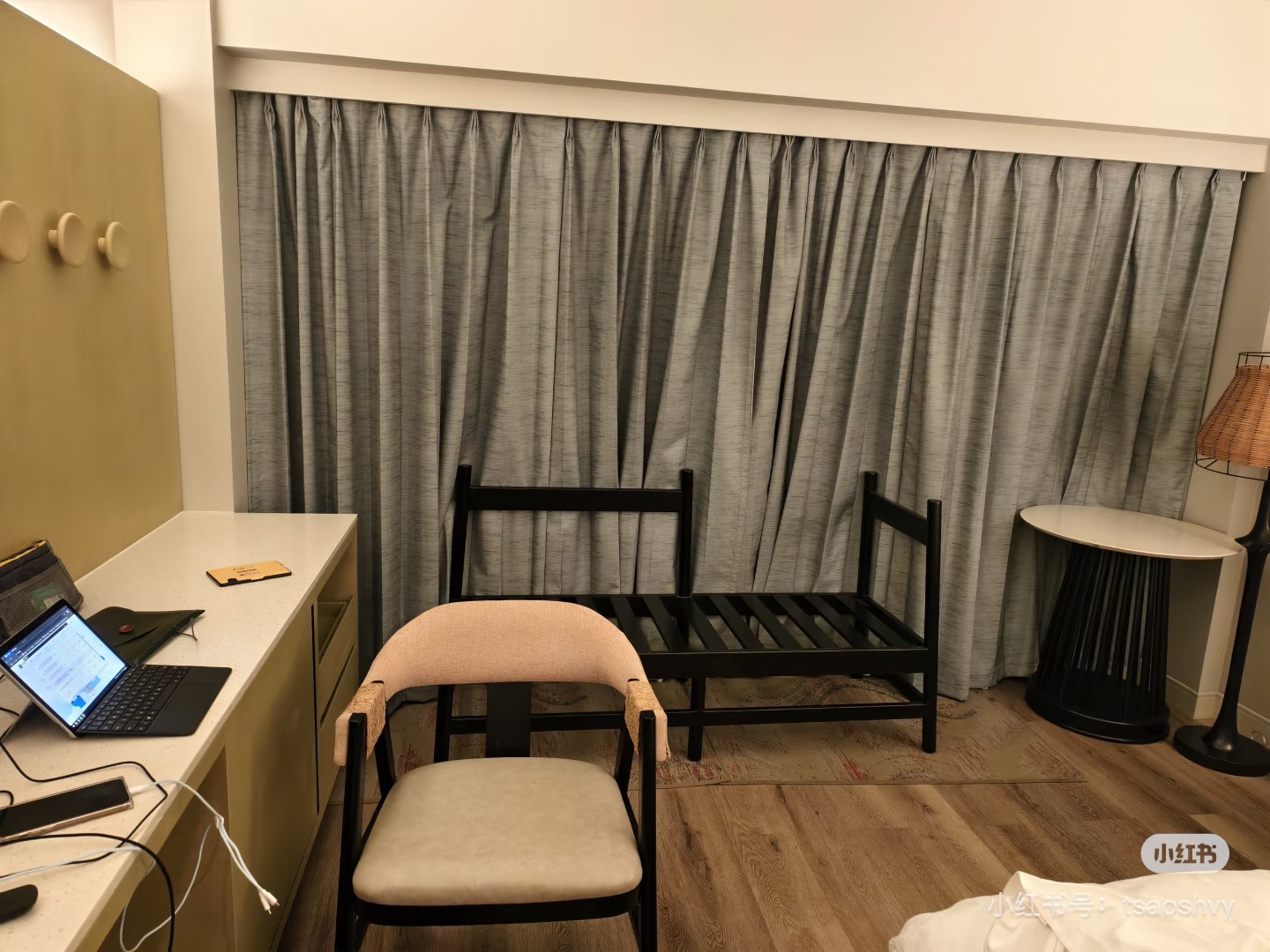 游客用桌子躺椅抵住房间窗户(受访者供图)