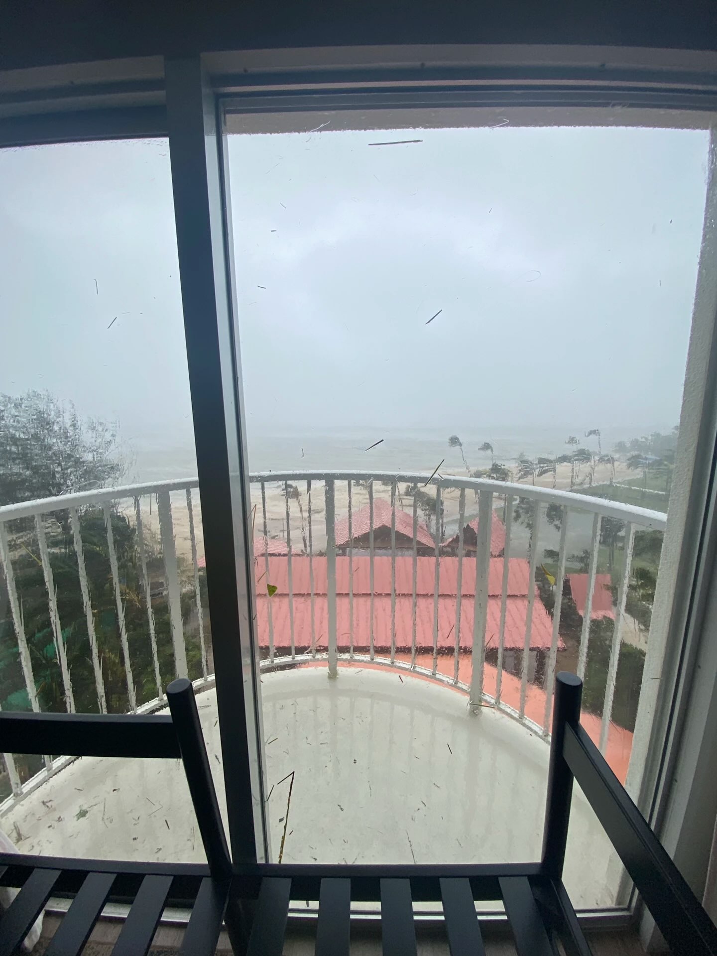 曹先生酒店房间外的台风情况(受访者供图)