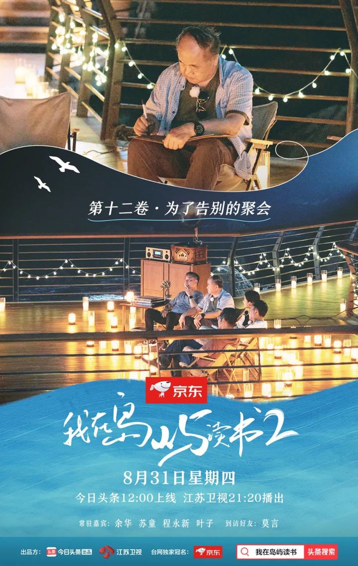 8月31日,今日头条12:00,江苏卫视21:20《我在岛屿读书2》第十二卷《为了告别的聚会》,以文学的名义,点亮你我的精神世界。