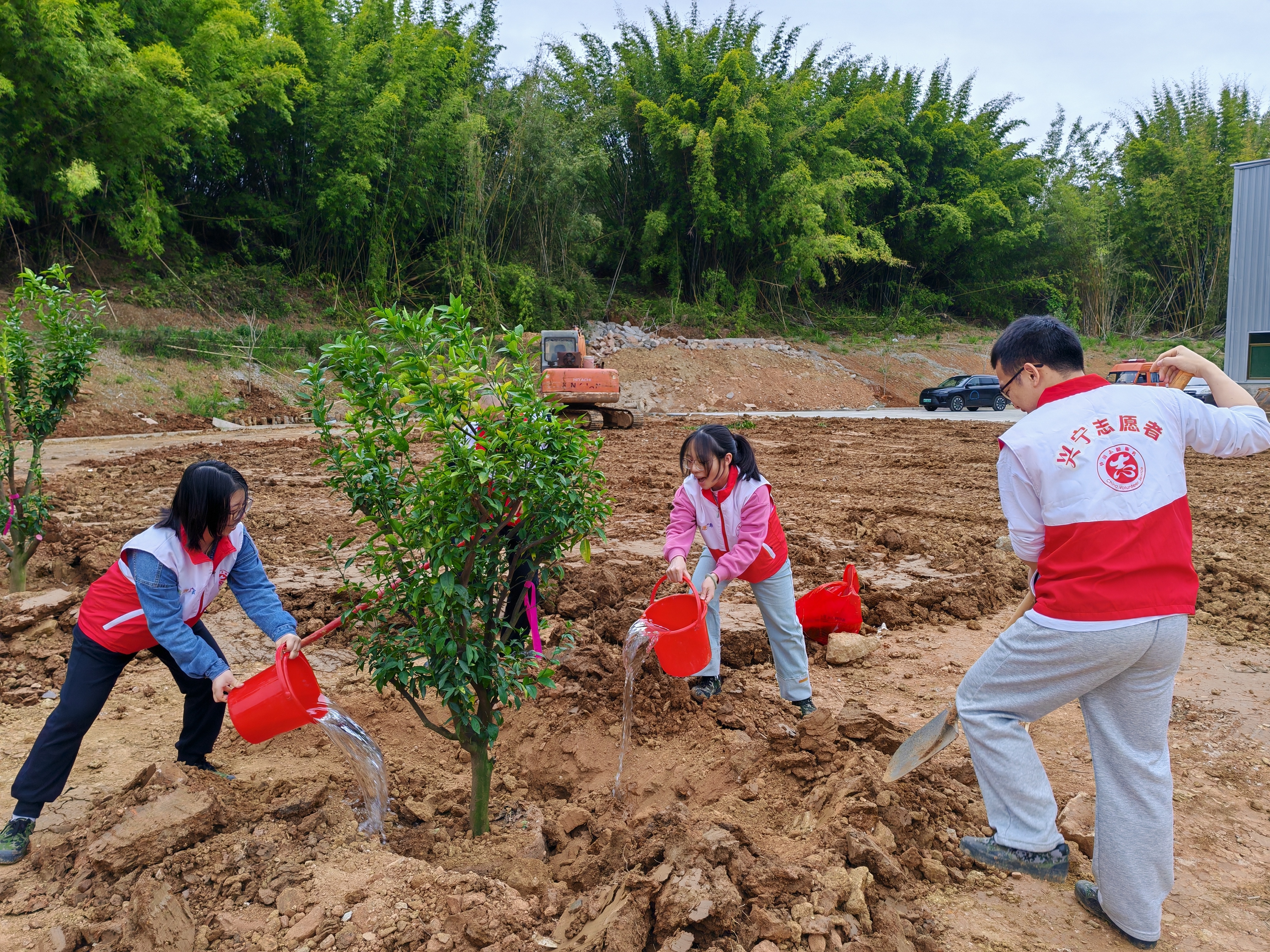 广东兴宁铁山渡田河保护区开展义务植树活动。